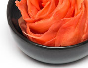 It is sweet, thinly sliced young ginger that has been marinated in a solution of sugar and vinegar